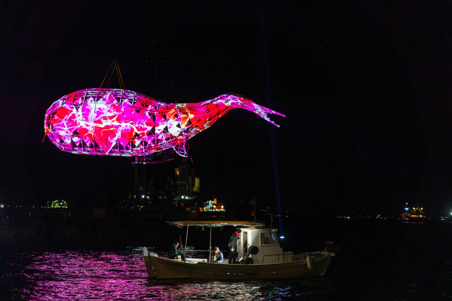 The event which began with diferrent processions entering the city followed by inaugurational speeches and culminated in the emergence of a 22-meter-long, 10-ton metal sculpture at the Elefsina waterfront -accompanied by music from Marina Satti’s 122 CHÓRES.